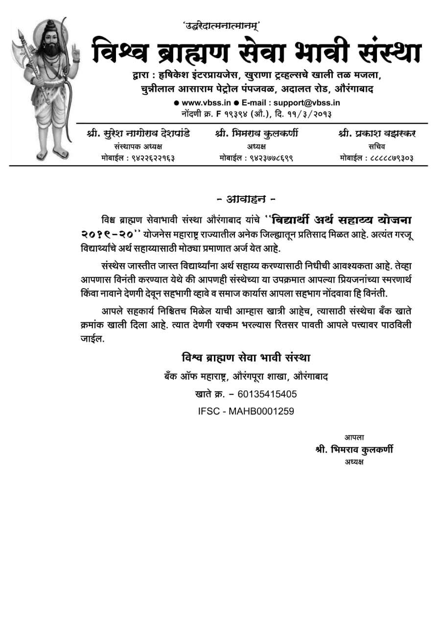 Vishva Brahmin Sevabhavi Sanstha have been hosted a lot of social events in Aurangabad in the past few years.VBSS also hosts smaller collaborative events to keep up with society.
